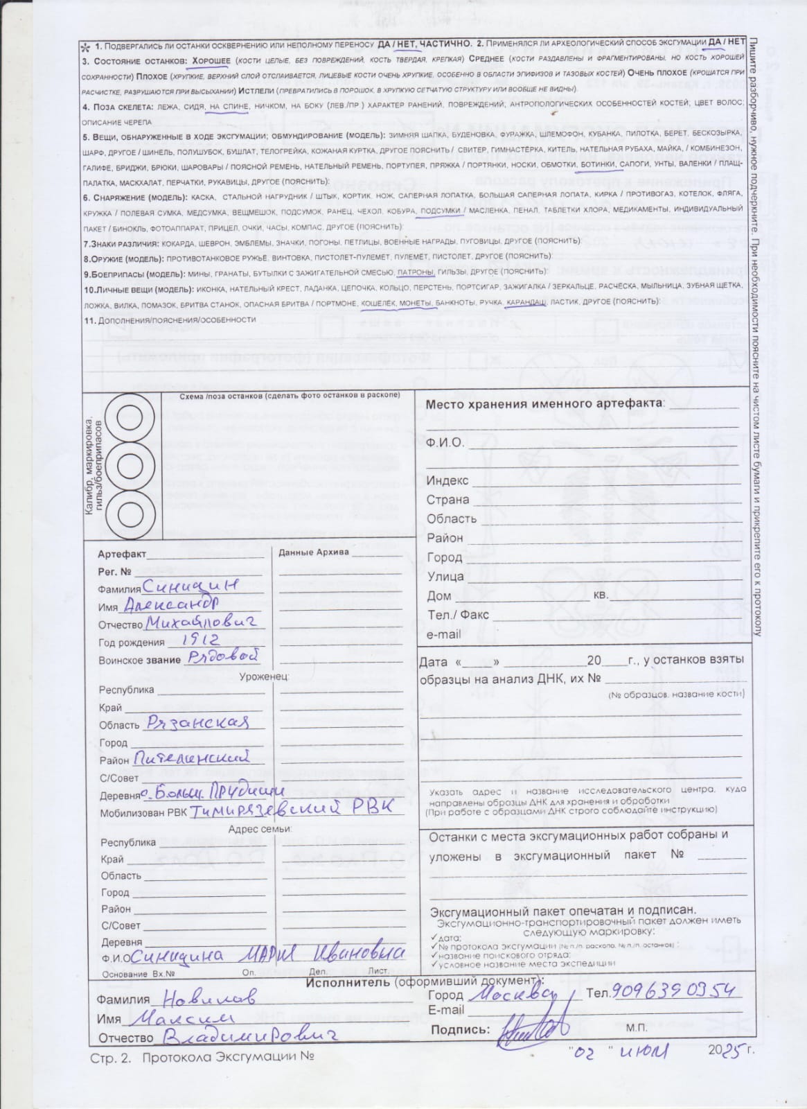 Похоронен родственниками на малой родине в Рязанской области в 2025 г.