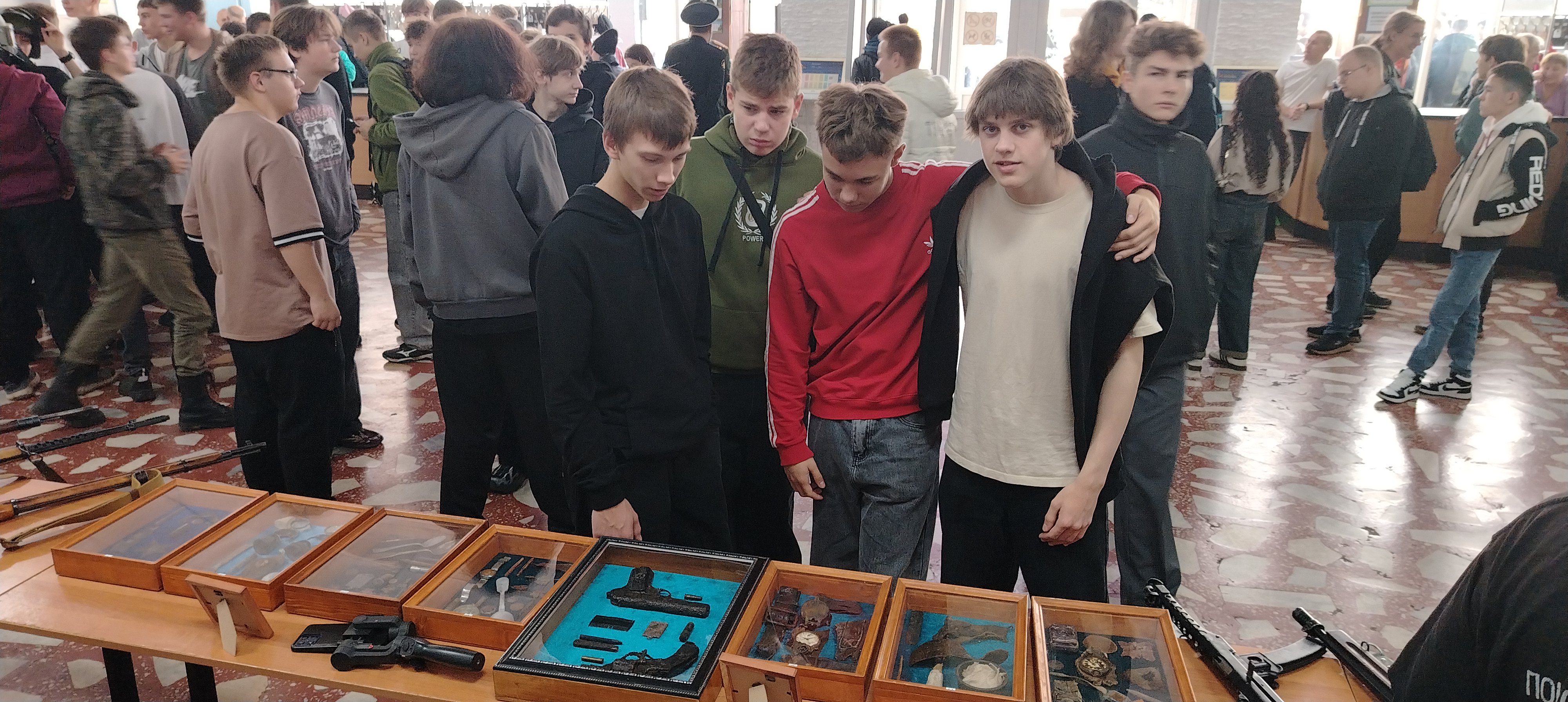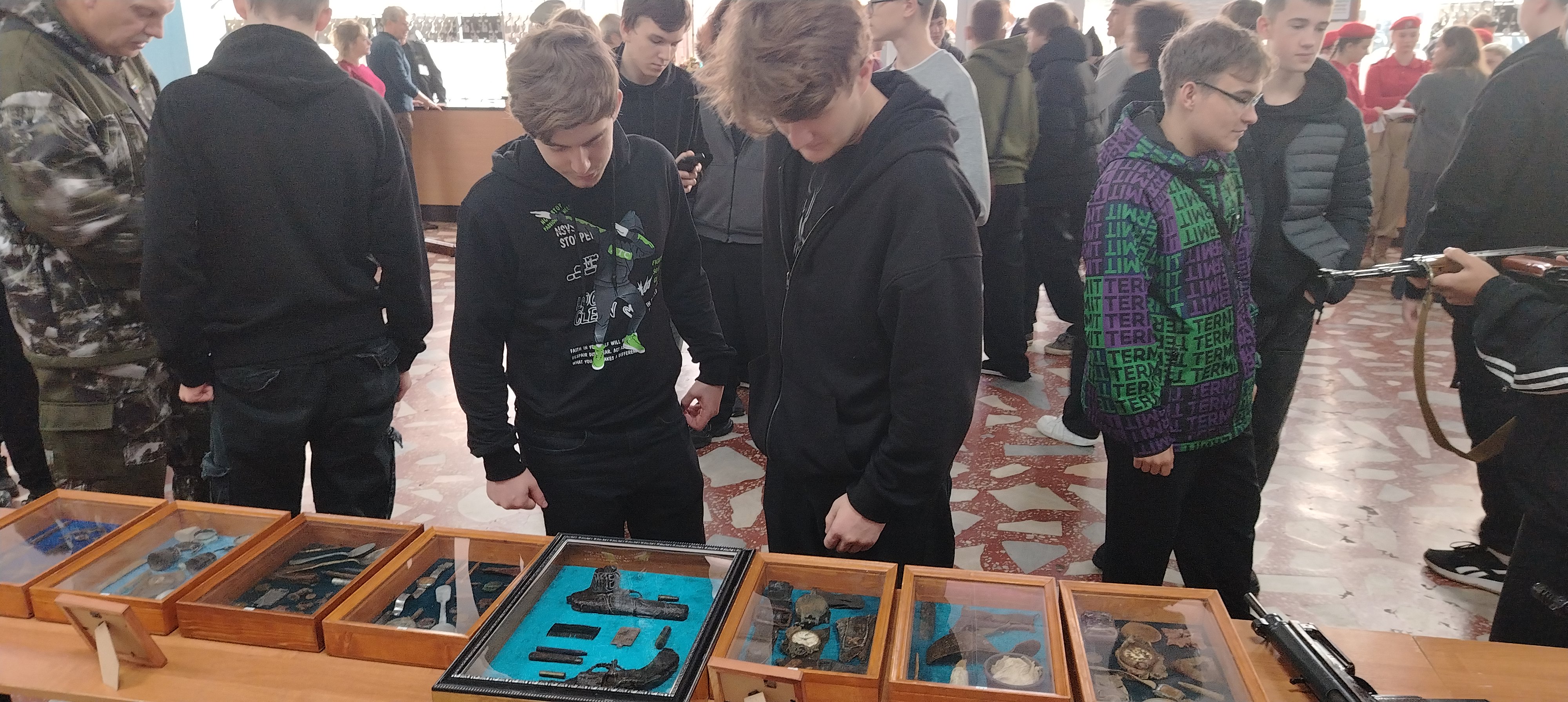 Военно-патриотическое объединение "Память", представила выставку оружия Великой Отечественной войны и экспонаты, найденные в результате поисковых экспедиций.